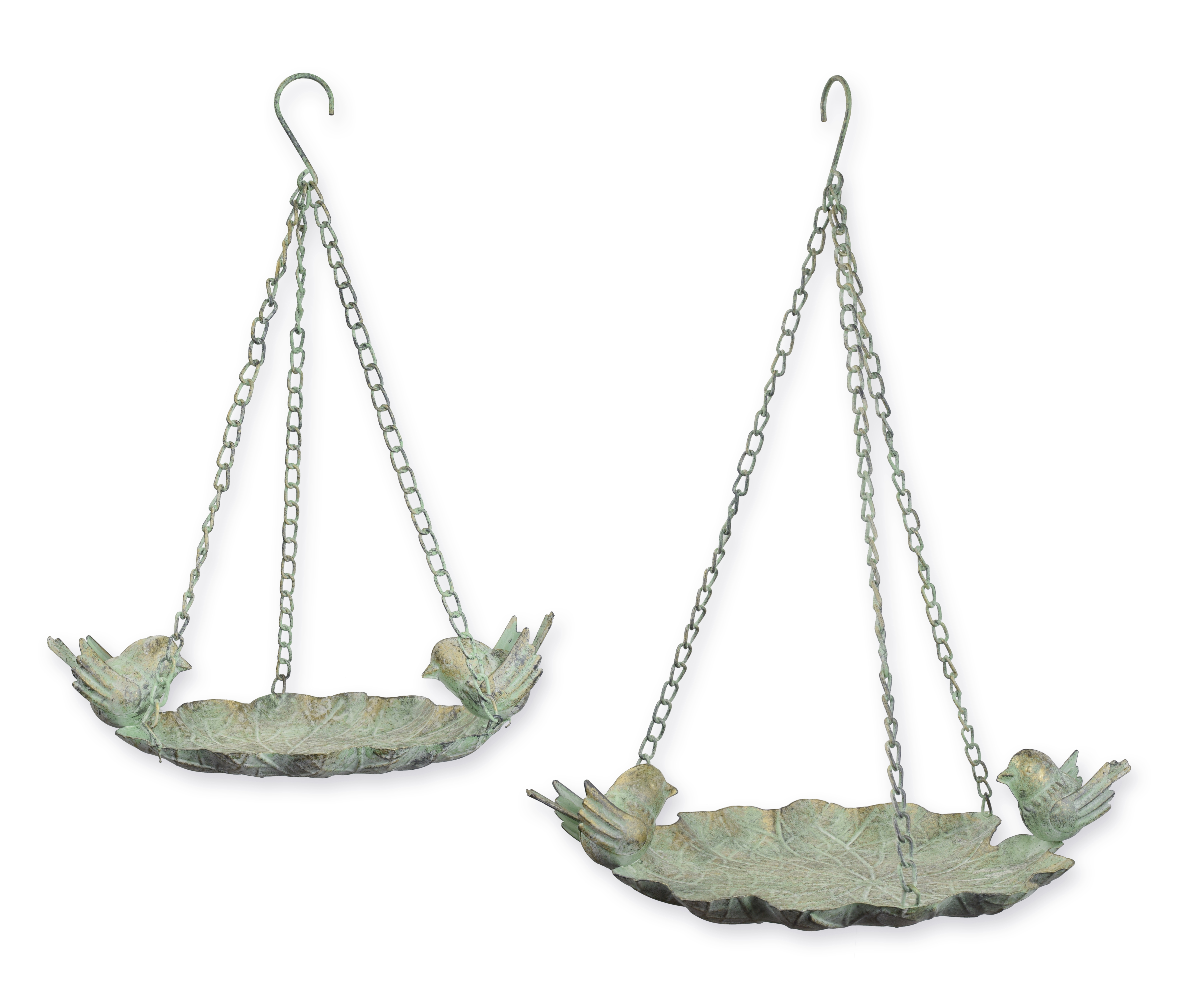 A pair of leaf shaped hanging iron bird baths replica retro design decoration