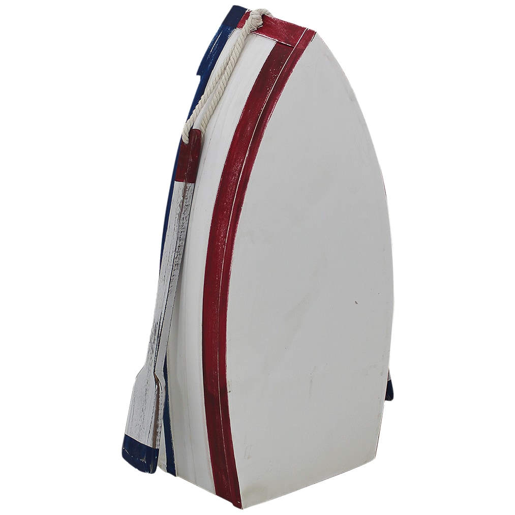 Discover our unique "Boat Shelf with Paddle" – a stylish wooden decoration that brings a maritime flair to your home. This antique-style storage piece perfectly combines functionality and aesthetics. Crafted from high-quality wood, the boat shelf impresses with its rustic appearance, reminiscent of the charming atmosphere of a coastal home. The decorative paddles add a special nautical touch to the shelf, making it a real eye-catcher in any room. Whether in the hallway, living room, or bathroom – this boat shelf not only offers storage space for your personal belongings but also adds stylish accents to your interior. Be inspired by the combination of antique style and maritime decor and bring a touch of coastal romance into your home! The dimensions are as follows: 22 x 49 x 15 cm (W x H x D). The weight is 1400g.