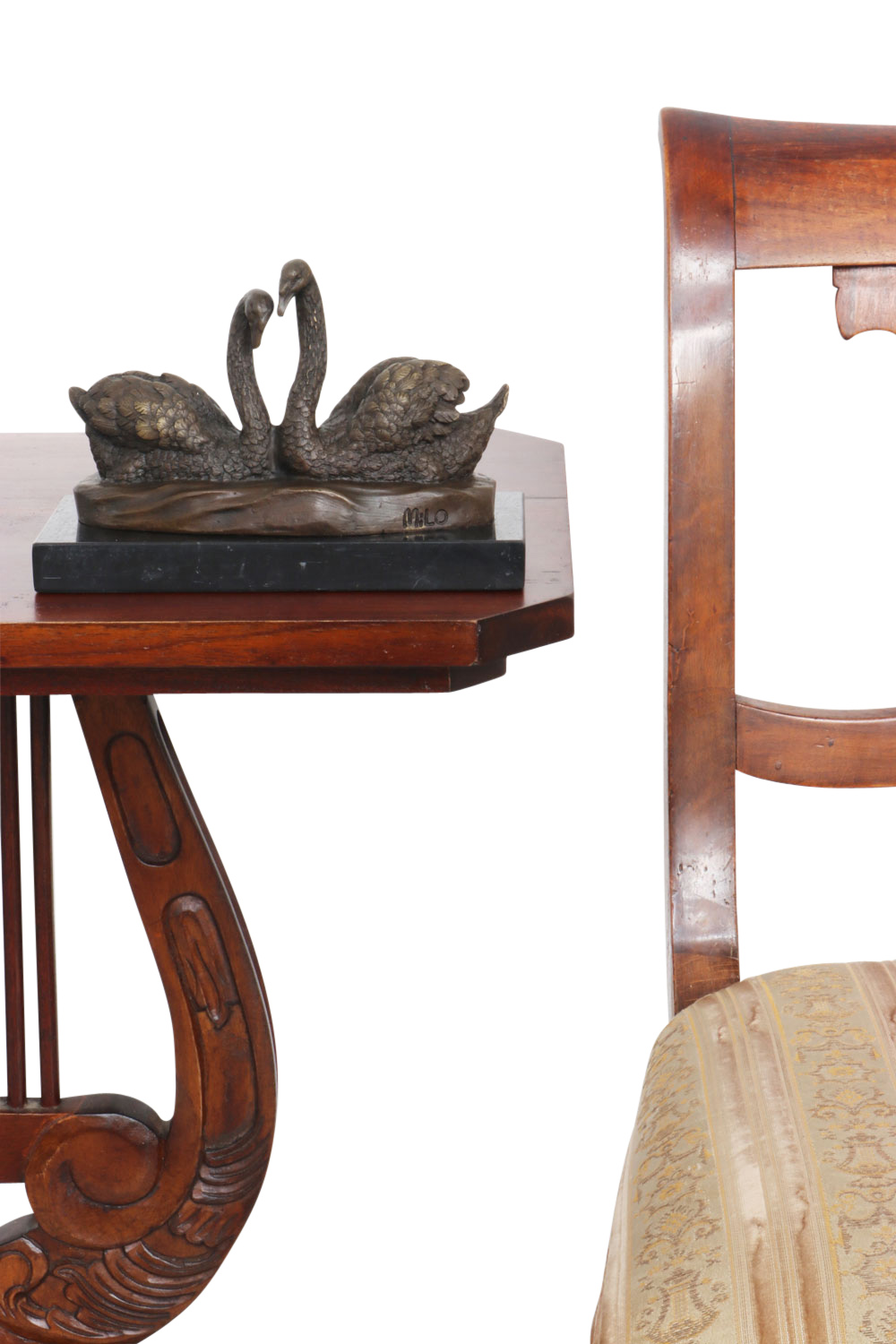 Sculpture pair of swan bronze swans figure statue antique style 20cm