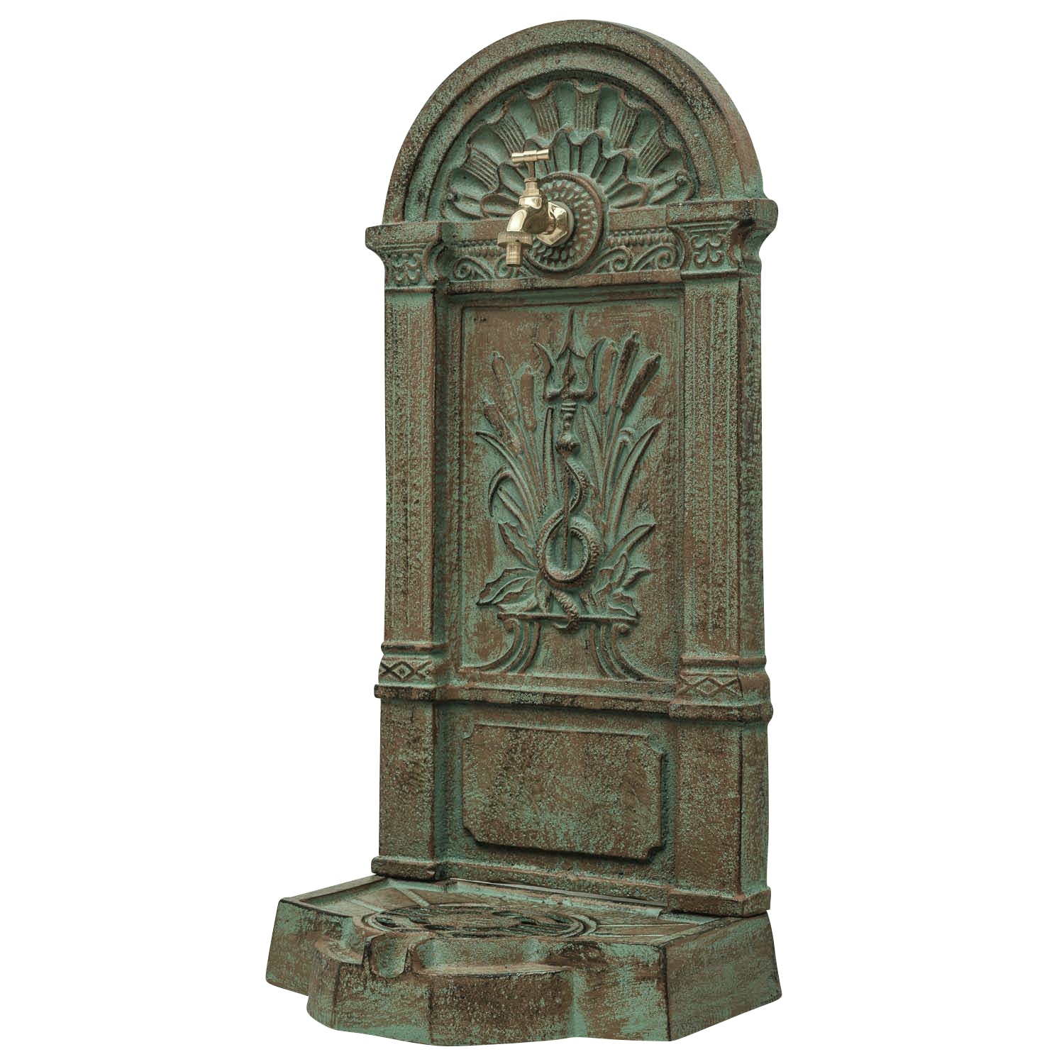 Upright fountain with basin antique style iron 83cm green